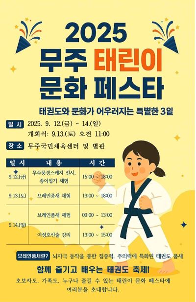 일시 : 9.12(금) ~ 14(일) 장소 : 무주국민체육센터 및 별관 |